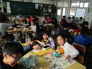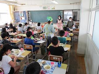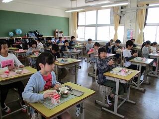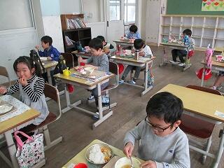 準備・配膳は、先生達で行い、1~3年は1階の教室等で、4~6年は3階の教室で食事をしました。