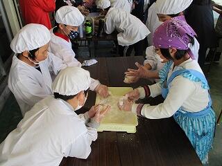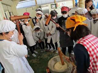 2月20日(木)5・6校時、5年生は保護者の方に協力してもらいながら、もちつき体験を行いました。
