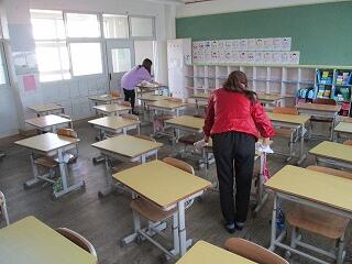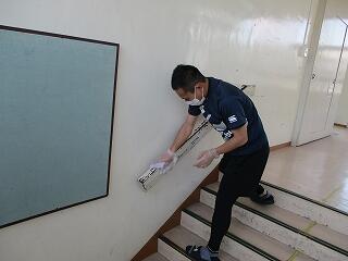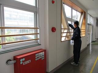 学校内(北校舎・中校舎・北校舎・体育館)の消毒として、下記のことを行っていただきました。