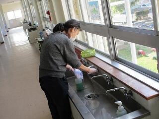 ・授業前後に手洗いを徹底し、共用の教材教具等は使用後に消毒を行う。