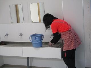 終わったら、教室に戻り、手洗いをする1年生の姿がありました。