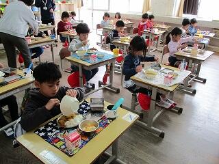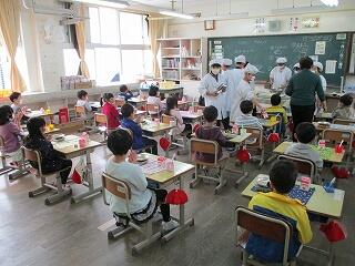1年生は、これまでに給食を3回しか食べたことがなく、2年生以上も友だちと食べる久しぶりの給食となりました。
