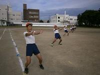 運動会の練習が本格化してきたこともあり、昼休みにも運動会へ向けた練習が見られるようになりました。リーダーは、エール交換の練習をしています。また、団技の自主練の姿もありました。