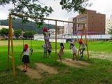 今日は熱中症指数が高かったため全校でのふれあいタイムが学級でのふれあいタイムへ変更となりました。フルーツバスケット、ハンカチ落とし、小鳥の森での遊具遊び、体育館でのドッジボールなど行いました。