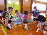 風の力の実験を行っていました。強い風、弱い風を受けて風力カーがどれくらい進むのかを実験を通して検証する学習です。みんな楽しそうに学習していました。