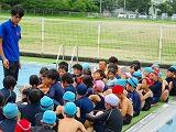 今週は、プール開き週間です。まずは、1・2校時に5・6年生が、プール開きを行いました。ムシムシする中でのプールでしたので気持ちよさそうでした。水慣れをしたり、泳力調査をしたりしました。今日の午後から中学年、水曜日に1年生、木曜日に2年生がそれぞれプール開きとなります。監視として来ていただく保護者の方々には深く感謝いたします。ご協力をお願いします。