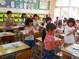 カスタネットで、リズムをとる学習をしていました。音が揃っていてとても上手にリズムをとっていました。