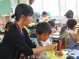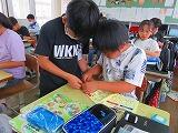 今日は、6年生の袋づくり(ミシン)の学習に、日頃コミュニティーセンターで裁縫教室に来たいただいている方々を講師としてお招きし、ミシン縫いのお手伝いをしていただきました。ずいぶんすくみ具合がよく完成した児童もいました。