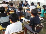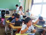 1年生が、早速一人1台端末の活用をしていました。今日は、初めて触るものなので、立ち上げやソフト等の確認程度でした。興味津々の1年生でした。