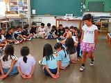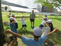 舞に津暑い日が続いています。学校では毎日熱中症指数を計測し、子どもたちの健康と安全の管理を行っています。本校には、小鳥の森があるため、運動場の木陰で遊ぶことが可能な日もあります。今日は、小鳥の森の木陰で遊びました。