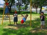今日は熱中症指数が高かったため全校でのふれあいタイムが学級でのふれあいタイムへ変更となりました。フルーツバスケット、ハンカチ落とし、小鳥の森での遊具遊び、体育館でのドッジボールなど行いました。