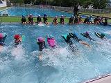2年生の水遊びの様子です。プールを周回する形で輪くぐりの練習をしていました。みんな上手に潜ったり浮いたりしてくぐっていました。
