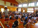 今日は、延岡警察署と連携して、不審者進入時の訓練が行われました。やはり、まずは入られないような工夫をしていくことが一番大切です。校内の環境も整えていきたいと思います。児童玄関(下足室)は、8:15分をもって施錠としていきたいと思います。その後、学校へご用の際は、必ず事務室で受付を行い学校内へお入りいただきますようお願いいたします。ご理解とご協力をお願いいたします。