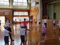 10月16日(水)の1校時に運動会前最後の全体練習を行いました。これまでの降雨のため、運動場が使用できず体育館で練習しました。