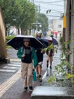 雨天時に傘をさして登校する際、ついつい広がってしまいます。今日もそのような姿が見られました。