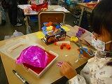 1年生の図工です。箱や袋を思い思いに飾り、きれいな入れ物を作る工作です。折り紙を切ったり貼ったり楽しそうでした。