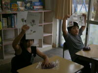 1年生にネパールより転入生が来ることになりました。日本での諸準備があるため、毎日の登校は9月からになります。今日は、初めての日本の学校での雰囲気を味わってもらうために登校してもらいました。日本語が分からないのですが、みんなと楽しそうに交流していました。1年生もみんな大喜びで、積極的にコミュニケーションをとっていました。終業式の日には、全校児童へ紹介したいと思います。