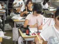 3年生は、習字の時間でした。呪文のように合い言葉を唱えながら、打ち込みや払い方の練習をしていました。みんな真剣です。