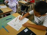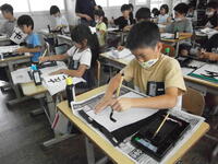 4年生の習字の学習です。集中していました。文字の形に気をつけながら、一画一画丁寧にバランスのよい文字を書いていました。