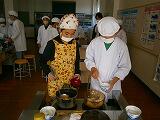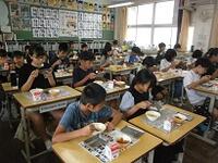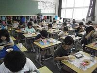 今日は5年生が調理実習で「ご飯」と「味噌汁」を調理しました。なれない包丁さばきに苦戦しながらでしたが、じょうずに調理していました。学校の調理では、いりこから出汁を取り、堅い大根からゆで始め、火の通りやすい揚げやネギは最後に入れるなど、丁寧に学習します。ご飯もお米を洗いその後30分水に浸し、鍋で炊きます。みんな「おいしい!」と食べていました。家庭科は生活化が大切な学習です。是非、ご家庭で子どもたちに作らせてくださいね。