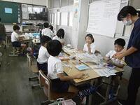 6年生は、総合的な学習の時間に、「シーカヤック体験」を行った経験を生かし、延岡の自然に着目したよさを探しています。現在は、その感じたよさを発信するためのまとめを行っています。今日もシーカヤックで講師をしていただいた方に来ていただき、発信の仕方について指導していただいています。仕上がりが楽しみです。