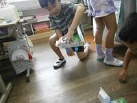 参観日の授業で話し合いながら作成したおもちゃ作りの設計図を基に、おもちゃ作りをしました。楽しそうに協力しながら作成していました。