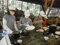 今日のメインの飯盒炊飯です。みんな楽しそうに活動していました。ご飯は少々お焦げのあるご飯、カレーはおいしそうに完成していました。自分たちの調理したご飯に満足げでした。今日もいい活動となっています。
