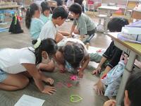 今日は、熱中症指数が厳重警戒レベルとなったため、昼休みは木陰で遊びました。木陰では、セミの抜け殻集めに一生懸命な子や、ミスト周辺で涼む子どもたちがいました。