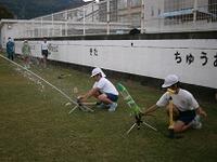 昨日の放課後は、運動会へ向けて、運動場の整備をしました。運動会で使う位置取りのポイントうちや、日陰を確保するためのテント設営、草取り等です。技術員さんには、この暑い中毎日草刈りをしていただいています。今後、運動場の整備についてご協力をお願いすることもあるかと思いますが、その節はご協力をお願いいたします。