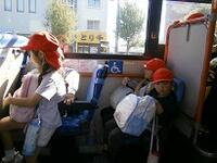 1・2年生が、路線バスに乗車し、川島ふれあい公園へ向け出発しました。笑顔いっぱいの1・2年生です。