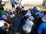 明日の雨予報に伴い、明日に予定していたタマネギの苗植えを技術員さんの指導のもと、今日行いました。しっかりと育てられるかな?!
