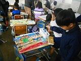 4年生は、図工の時間でした。のこぎりを使って作成する工作です。うまく使えずに四苦八苦していましたが、先生方に手伝ってもらいながら進めていました。