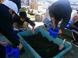 夏の花が終わり、春に向けて、一人一鉢の植え替えを行っています。苗は、以前紹介したとおり、技術員さんが愛情を込めて育てた苗を使います。子どもたちには、パンジーの苗を植えてもらいました。卒業式に子どもたちが育てた花でいっぱいになるだろうと楽しみです。