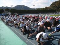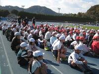 午前中は、少し肌寒い中でしたが、午後からは、活動しやすくなり、半袖で参加する子も増えていました。昼食・休憩時間に陸上競技連盟の方々による模範演技を観覧しました。3000m障害の大きなハードルや水濠を跳び越える様子や走り幅跳びで13台並んだパイプ椅子の距離を超える跳躍、走り高跳びで180cmを超える跳躍を間近でみることができました。また一つ、素晴らしい経験と思い出ができたことと思います。