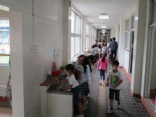終わったら、教室に戻り、手洗いをする1年生の姿がありました。