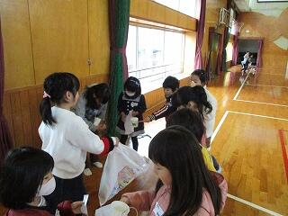 1月29日(水)2・3校時、1年生は体育館で校区内にある保育園の年長さんとの交流会を行いました。
