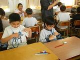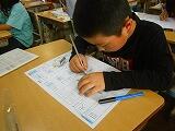 4年生は、三角形を描く練習をしていました。ずれないように正確に描くことは、難しいことです。これもくり返し練習することで身につきます。集中して取り組んでいました。