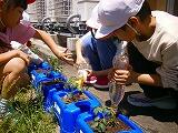 2年生の生活科の時間に、トマトの苗植えが行われました。たくさん収穫できるように丁寧に植えました。これからのお世話が大切です。頑張ろう!