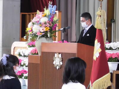 校長先生が1学期の子どもたちの様子をスライドでお伝えしました。