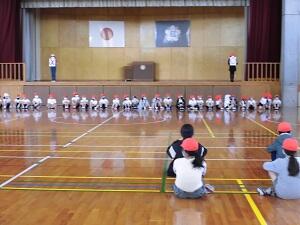 先生方の紹介、先生方からのお言葉、花束贈呈が行われ、最後は、子どもたちの間を通って退場としました。