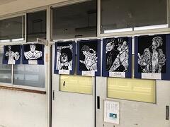 終わった児童は、廊下に貼ってある解答を見て自己採点。