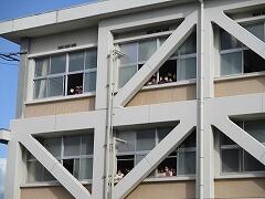 2階3階の教室も、窓を開け、外を見る子どもたちがたくさん見られました。