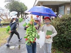 あいにくの雨模様となりましたが、大根の収穫を行いました。