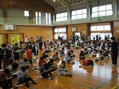 この2分間は、体育館内に聞こえるのは、えんぴつで書く音のみ。それだけ子どもたちは集中して取り組むことができていました。これまで取り組んできたことが、「目指す「集中力」の育成という目標を達成することができました。