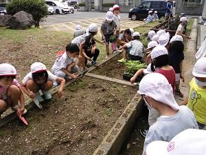 10月21日(木)にJAの方を招いて、3年生が空飛ぶ新タマネギの苗を植えました。JAの方に苗の植え方の説明を受けた後、みんなで手分けして苗植えをしました。初めての経験の子どもたちが多く、楽しそうに植えていました。