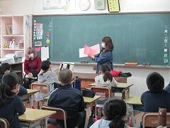 最初は5年生も隣の1年生も少々戸惑い気味でしたが、いざ授業が始まると、子どもたちはこれまで同様、真剣に学習に取り組みました。