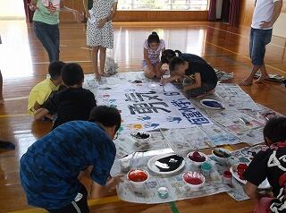 7月27日 (水)に本校体育館、プール、南校舎、中校舎、北校舎(コミュニティーセンター)を利用してレクリェーション(校内キャンプ)を実施しました。午後12時に体育館に集合し、開会行事の後、水泳、体育館での運動会の旗作りと、みんなで仲良く活動しました。夕食は、保護者と協力してカレーとフルーツ白玉を作りをしました。やはり、みんなで作ったカレーとフルーツ白玉はおいしいですね。おかわりをたくさんする子どもたちもいました。片付けも、さすが6年生、進んでてきぱきとやりました。その後、暗くなった校舎を利用して、肝試しを行いました。昼間の校舎とは違い、どきどきしながら校舎を歩きました。子どもたちにとって、夏休みの良い思い出になったことと思います。PTA学年部を中心にした活動でしたが、たくさんの保護者に協力していただき、無事終了できたことに感謝申し上げます。午後21時に笑顔で親子が、各家庭に帰って行かれました。お疲れ様でした。
