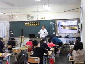 10月18日(月)の1・2校時にそろばん塾講師の方を招いて、3年生の指導をしていただきました。専門家による指導はとても分かりやすく、子どもたちも意欲的に学習していました。
