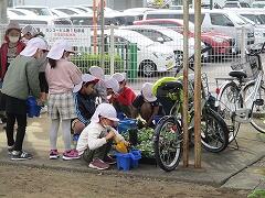 先月の学級苑の花植に続いて、今日は多くの学年が、一人一鉢の花植を行いました。