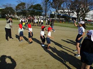 最後に、縦割り班に分かれて、学年の違う友だちと一緒にいろんな長縄のとび方をしながら楽しみました。